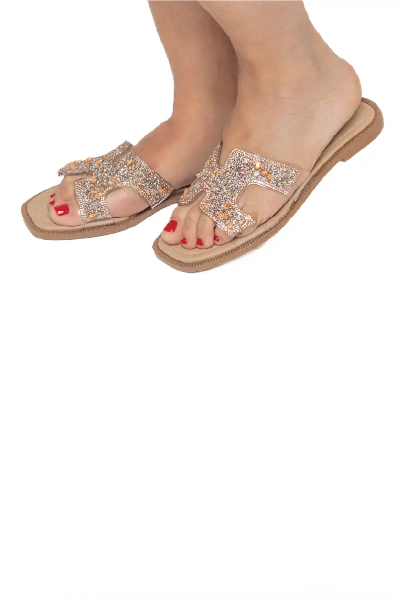 Ιταλική παντόφλα με δερμάτινο πέλμα και διακοσμητικές αγκράφες.